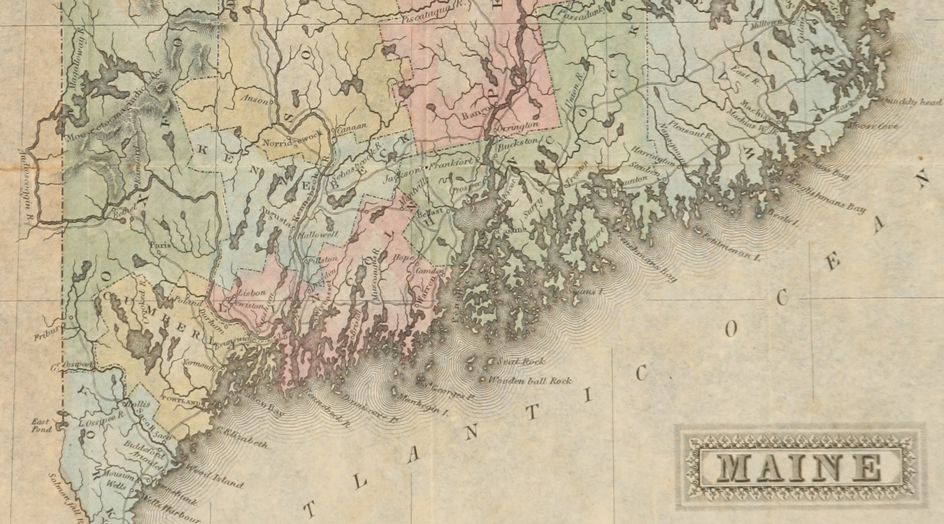 You’ll find these resources, like this 1824 hand-tinted map of Maine by cartographer Fielding Lucas, available for download in DigitalCommons@UMaine at https://digitalcommons.sites.umtraining.lv-o-wpc-dev.its.maine.edu/library-new/mainebicentennial/