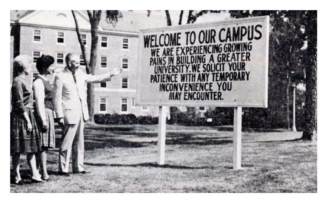 University President Lloyd Hartman Elliott had been known for his commitment to expanding student capacity on campus. As noted on the Office of the President web pages on Past UMaine Presidents, six new classroom buildings, six dormitories, two dining halls and the Hauck Auditorium were completed during his presidency.