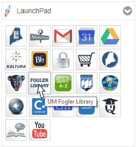 will use Single Sign-on (using MaineStreet credentials) to access Fogler Library electronic resources―including journals, indexes, and databases―when you are not on campus.  Simply sign in to your myUMainePortal account and navigate to  Library subscription resources by clicking on the Fogler Library icon on the myCampus LaunchPad.  If you instead locate Library subscription resources in LibrarySearch first, you can find a link to “Sign in for more options” on the LibrarySearch page to use Single Sign-On.